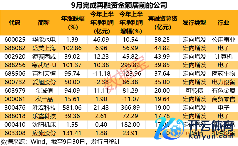 9月份A股再融资完陈规模环比增近30% 6家公司募资超35亿元9月份A股再融资完陈规模环比增近30% 6家公司募资超35亿元